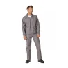 65% coton / 35% polyester - 300 g. Pinces devant, 2 poches italiennes doublées du même tissus, braguette boutons, renfort sur les poches arrière et mètre.